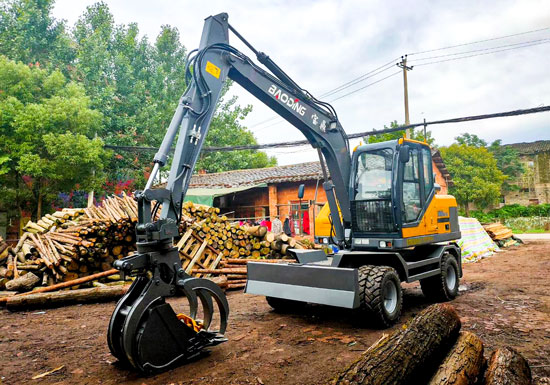 寶鼎95輪式挖掘機木材市場抓木的情景已經是司空見慣,就在幾年前的木材裝卸領域,其裝卸方式無非是一些并不專業的吊車、鏟車等非專供機械,甚至在大部分木材原產地完全依仗的依然是人工勞作,如此低效率、高成本裝卸方式在機械化快速滲透的時代顯然不太應景,尤其是旺季時分,效率的低下將拉低整個產業鏈的工期進度。